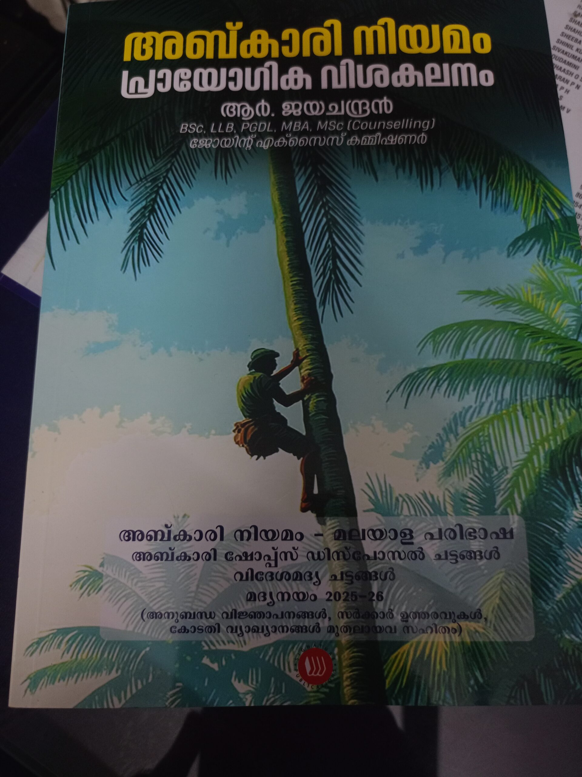 ABKARI ACT A BOOK ABOUT ABKARI ACT IN MALAYALAM WRITTEM BY R JAYACHANDRAN JOINT EXCISE COMMISSIONER DETAILS ABOUT ABKARI ACT 2025-2026, DETAILED OF EXPLANATION , ABKARI ACT IN 1077, PRODUCTION , KEEPING IN HAND , SALES , ABOUT LICENSE , PUNISHMENTS , 2002 KERALA ABKARI SHOPS DISPOSAL , 1953 FORIGHEN ACT , ALL LEGAL AMMENDEMENTS